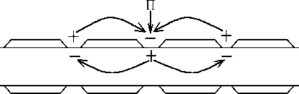 соединены проводѐщей средой возникаят местные токи (от "+" до -""). Эти токи в области невозбуждённых перехватов