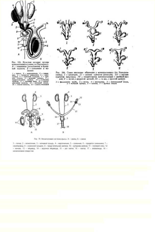 Семяпровод – гомологичен вольфову каналу – начинается от каждого придатка семенника; образует в конце дольчатое расширение – семенной пузырек, а затем у корня полового члена впадает в мочеполовой канал.