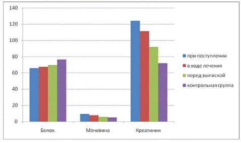 показатели: содержание общего белка, мочевины, креатинина, ионов натрия и калия