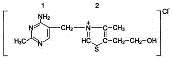 Структура витамина включает пиримидиновое и тиазоловое кольца,