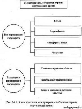 международно-правовые объекты охраны, не входящие в юрисдикцию государств (космос, Мировой океан, воздушный бассейн, Антарктида, мигрирующие виды животных);