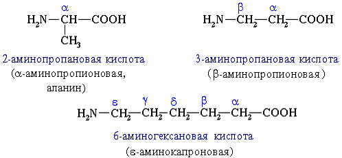 Часто используется также другой способ построения названий аминокислот, согласно которому к тривиальному названию карбоновой кислоты добавляется приставка амино- с указанием положения аминогруппы буквой греческого алфавита.