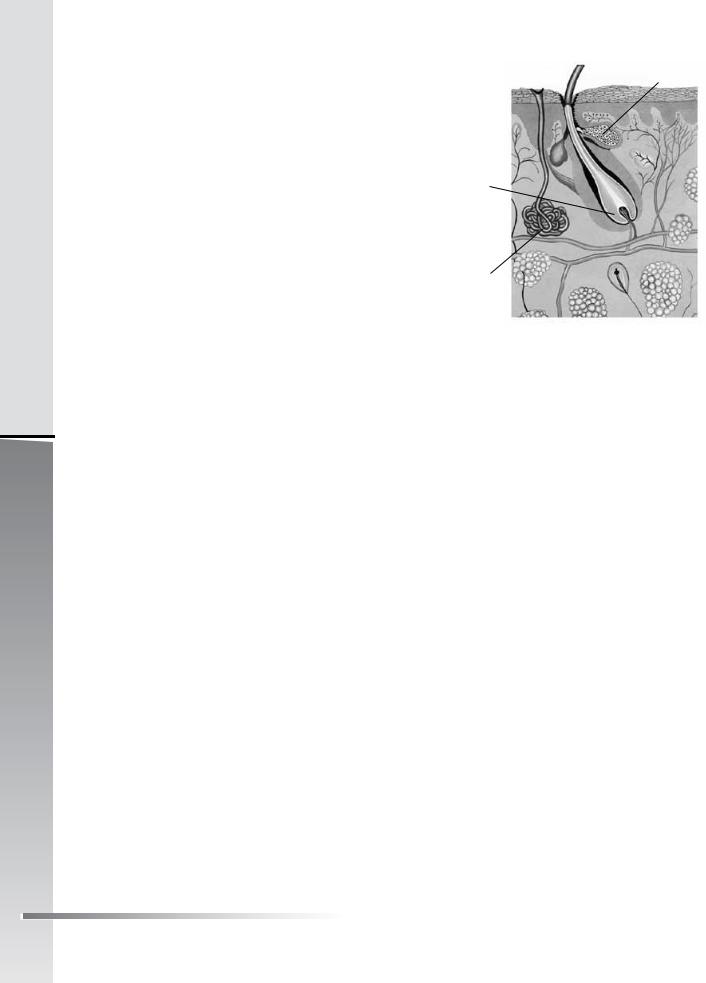 зує на волосяну цибулину, 2 – на потову залозу, 3 – |