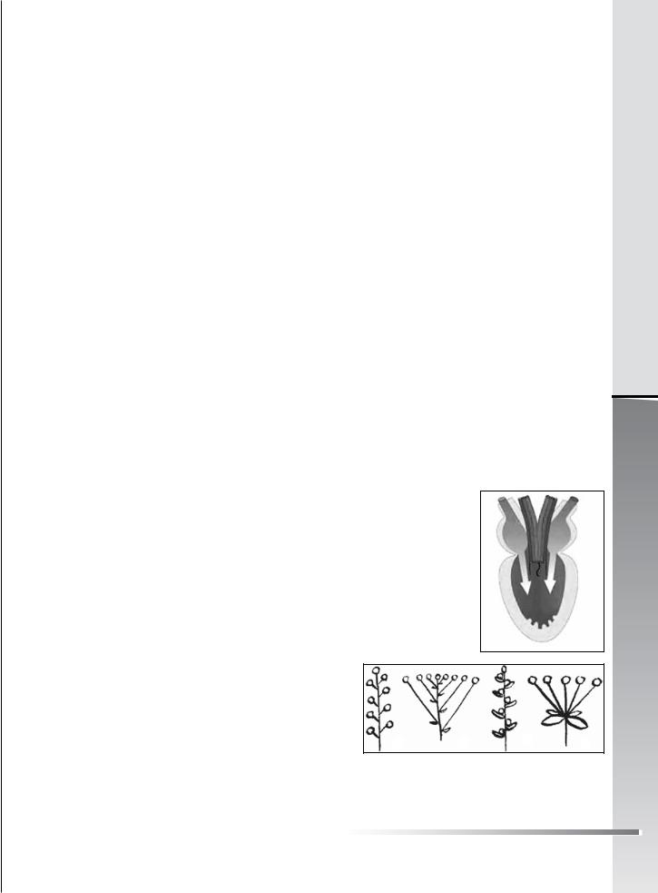24.Визначте представників квіткових рослин, які утворюють зазначені на малюнку типи суцвіть: І – тип суцвіття у ячменю – 3; ІІ – черем- ха утворює суцвіття 1; ІІІ – цибуля утворює суцвіття 4.
