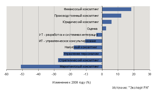 В ряде достаточно емких сегментов рынка даже в период кризиса удалось поддерживать рост. Одними из таких сегментов являются услуги IT-консалтинга в области системных интеграций и управленческого консультирования: рост на 3 и на 11 процентов соответственно.