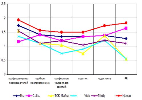 Рисунок 3.5 - Конкурентные профили школ туризма