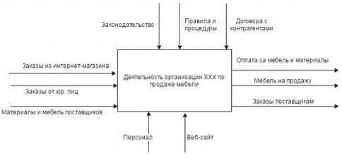 (см. Рисунок 1 Контекстная диаграмма) или первый уровень диаграммы IDEF0.