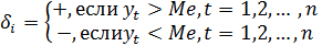 Критерий серий, основанный на медиане выборки, реализуется в виде следующей последовательности шагов: