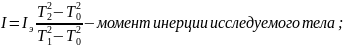 С помощью крутильного маятника, измеряя лишь периоды вращения рамки, рамки с эталонным телом и исследуемым телом, и зная момент инерции эталонного тела, мы находим момент инерции исследуемого тела.