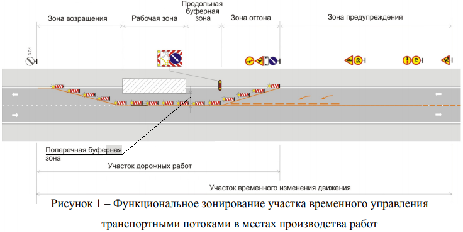 Расстановку необходимо осуществлять с конца участка, наиболее удаленного от зоны производства работ со стороны, свободной от дорожных работ. Сначала устанавливают дорожные знаки, затем ограждающие и направляющие устройства. Снятие производится в обратной последовательности. |
