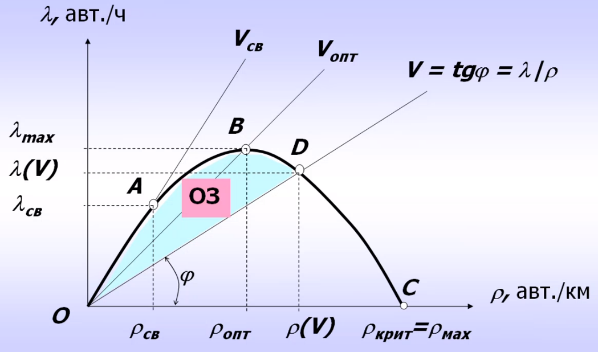 Кроме основной диаграммы ТП при управлении используют производную диаграмму ТП, которая представляет собой график скорости при данной плотности: