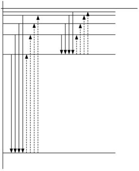 Характеристическое рентгеновское излучение. Состояние электрона в атоме характеризуется главным квантовым числом n. Электроны с одинаковым значением главного квантового числа n образуют оболочки. Ближайшие к ядру оболочки обозначают латинскими буквами K (n = 1), L (n = 2), M (n = 3), N (n = 4), ... При столкновении с атомом быстрые электроны могут выбить электрон из внутренней оболочки атома. На образовавшееся вакантное место переходит электрон из более удаленных от ядра оболочек. Этот переход сопровождается излучением рентгеновского фотона, энергия которого равна разности энергии начального и конечного состояний электрона (hν = Eнач – Eкон). Следовательно, спектр возникающего излучения является линейчатым и определяется структурой электронных оболочек конкретного атома. В связи с этим такое рентгеновское излучение называют характеристиче-