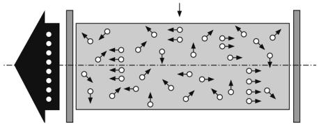 Начало лавинообразному процессу в активной среде может положить случайный спонтанный процесс испускания атомом среды кванта света в направлении оси резонатора. Через короткое время возникает стационарный режим генерации излучения, направленного вдоль этой оси. Такое (лазерное) излучение выводится наружу через одно из зеркал, обладающих частичной прозрачностью (см. рис. 3.8).