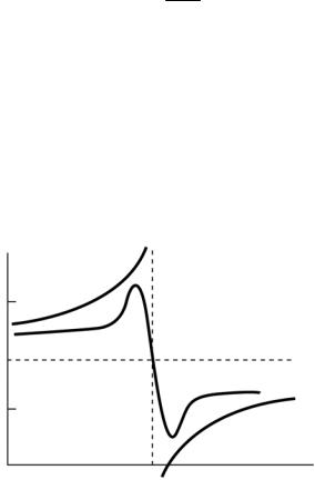 Вблизи собственной частоты ω0 рассмотренная упрощенная теория не применима. В этой области необходимо учитывать затухание колебаний (поглощение света). В результате вблизи ω0 показатель преломления уменьшается с увеличением частоты ω (см. рис. 1.28). Такой ход зависимости n от ω называется аномальной дисперсией.
