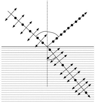 трического поля Е, параллельная поверхности диэлектрика (рис. 1.33, точки). При этом преломленный луч частично поляризован (точки и стрелки на том же рисунке), так как отражается лишь доля падающего света.