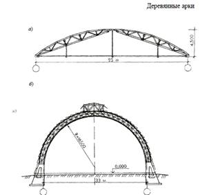 а - трехшарнирная деревянная арка из многоугольных ферм;