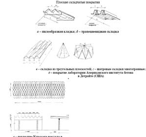 Складчатые конструкции, применяемые в цилиндрических оболочках и куполах, рассматриваются в соответствующих разделах.