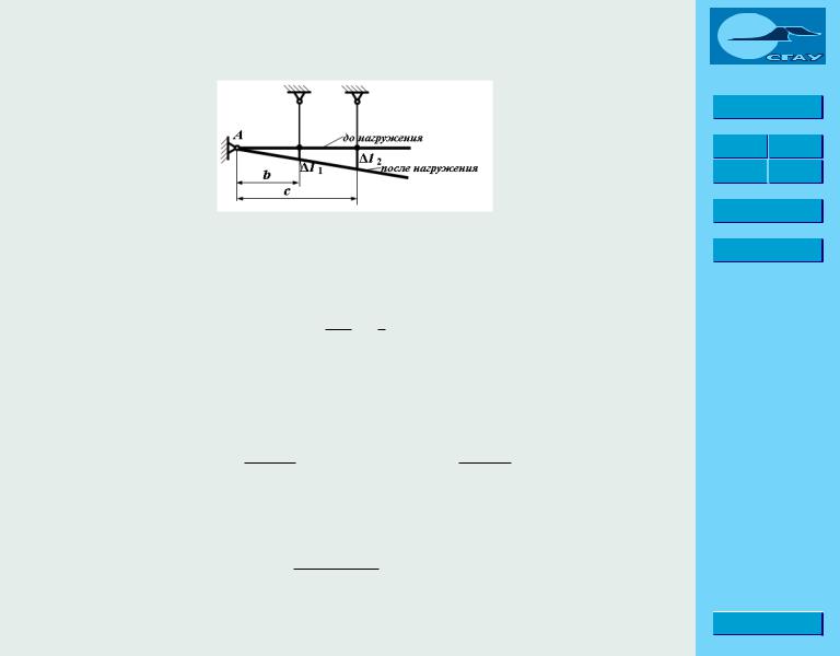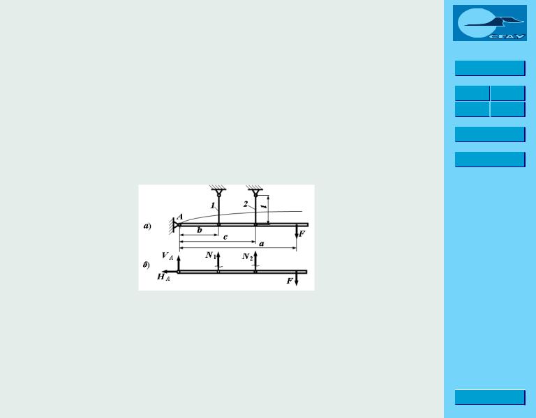 Теперь изобразим статически неопределимую систему такого же типа (рис. 2.6.2). Горизонтальный брус поддерживается двумя стержнями. В реальных конструкциях горизонтальный брус имеет большое се- чение и считается абсолютно ж¼стким, то есть недеформируемым.