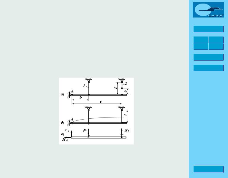 Изобразим систему, рассмотренную в предыдущем параграфе. Пусть второй стержень изготовлен несколько короче. Так бывает всегда, т. к. изготовить деталь абсолютно точно невозможно, здесь монтажная