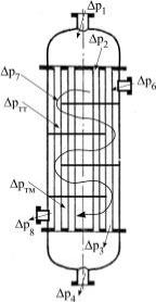 ства (рисунок 3.12) Dрт = Dр1 + z×(Dр2 + Dртт + Dр3) + Dр4 + {Dр5}, межтрубного Dрм = Dр6 + (l/lп)×Dртм + (l/lп - 1)×Dр7 + Dр8.