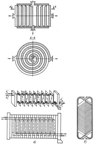 В спиральных теплообменниках по-