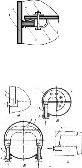 ты корпуса аппарата от эрозионного воздействия струи и равномерного распределения пара по сечению аппарата сырье подается через специальное устройство – улиту, которая крепится к корпусу колонны. На рисунке 4.4б показана конструкция улиты для ввода сырья одним потоком, на рисунке 4.4в - двумя потоками. Штуцера ввода сырья в колонну быстро изнашиваются, поэтому их защищают гильзой, которая при необходимости легко заменяется новой.
