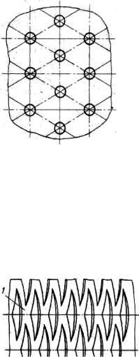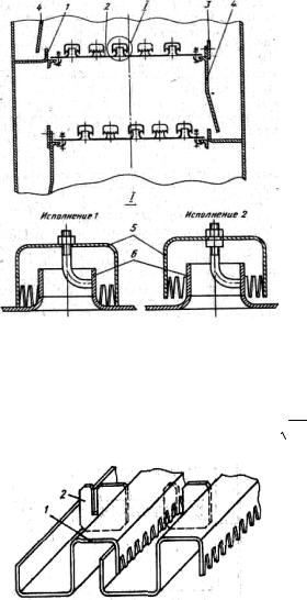 Примером может служить ситчато-клапанная тарелка с продольными перегородками (рисунок 4.11), на полотне которой, кроме клапанов, смонтированы перегородки, обеспечивающие направленное движение потока жидкости. Продольное секционирование увеличивает производительность тарелок в 1.4 раза, а эффективность массообмена – в 1.25-1.3 раза.