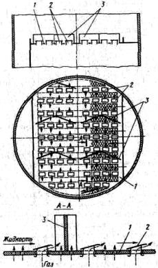 1 – полотно тарелки, 2 – клапан, 3 – перегородка массообмена в колонне, поэтому