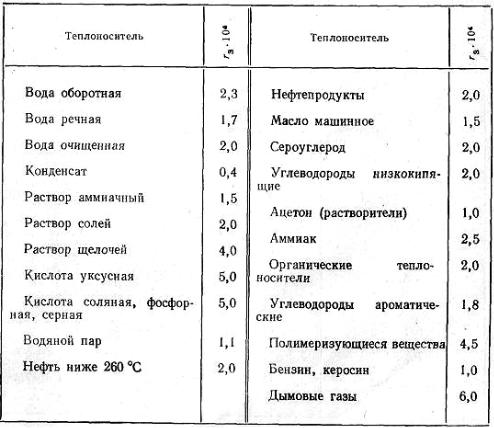 Таблица Б2 Термические сопротивления загрязнений (rз, м2∙К/Вт)