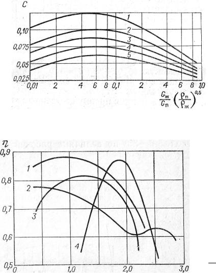 Рисунок В1 Значения коэффициента скорости пара в сечении колонны с переливными тарелками