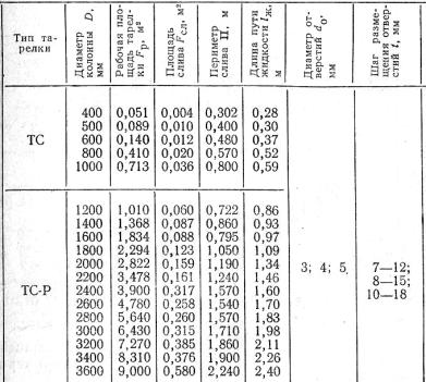 Таблица В6 Характеристики ситчатых переливных тарелок
