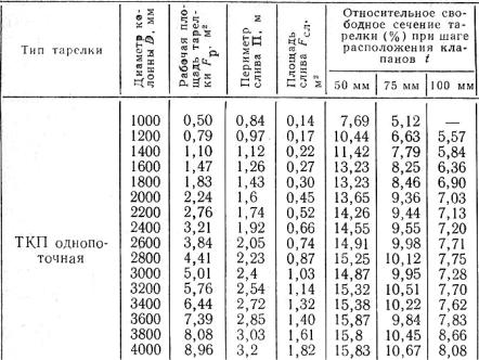 Таблица В7 Характеристики клапанных тарелок