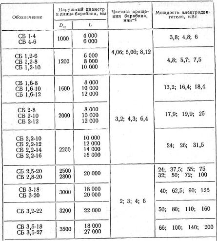 Таблица Г2 Основные параметры барабанных сушильных аппаратов