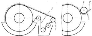 1 – вал, 2 – диска, 3 – корыто, 4 – распределительная головка, 5 – ткань, |