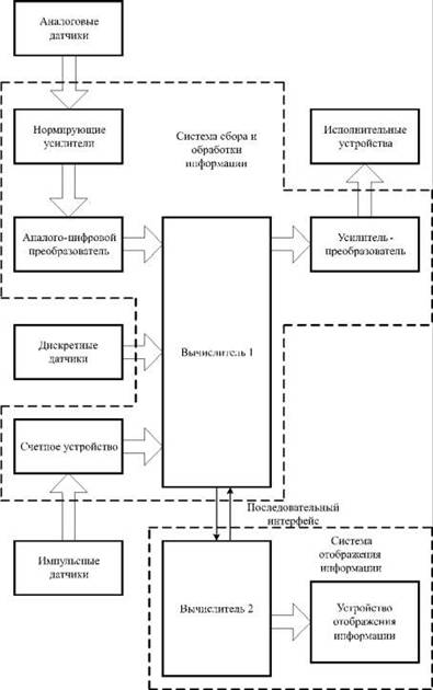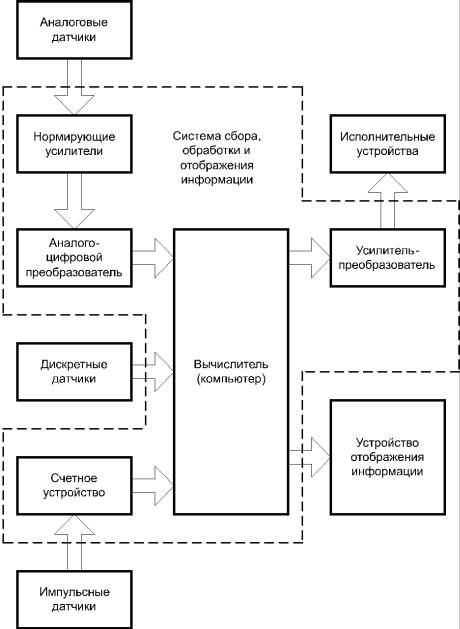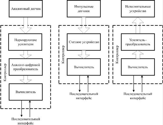 ) преобразователей, принимающих сигналы от датчиков и преобразующих их в вид, удобный для дальнейшей обработки;