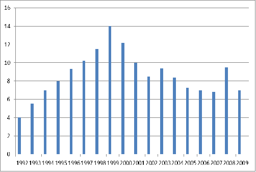Уровень безработицы в Российской Федерации за период с 1992 года по 2009