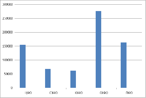Из рисунка видно, что самое большое количество безработных наблюдается в Северо-Кавказском федеральном округе. Это связано с неблагоприятной ситуацией, военными действиями.