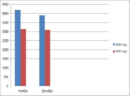 Как видим из рисунка в ноябре - декабре 2012 года по сравнению с аналогичным периодом 2011 год уровень безработицы пошел на спад.