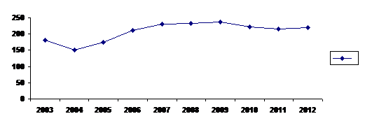 Рис. 1. Динамика преступности, связанной с незаконным оборотом наркотиков за 2003-2012 гг.