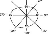 Определение границ поля зрения проводят по 8 (через каждые 45°) или лучше по 12 (через 30°) меридианам.