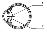 1 — при напряжении; 2 — при расслаблении ресничной мышцы