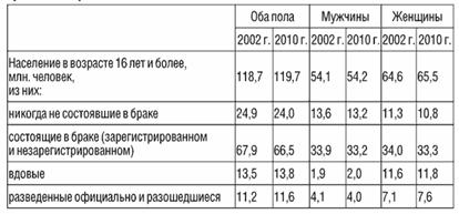 Таблица 1 - Брачная структура населения в возрасте 16 лет и более по переписи 2010 года