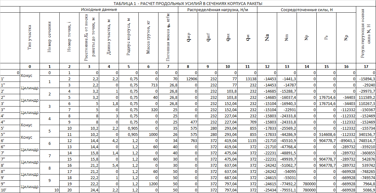 Так как все баки имеют цилиндрическую форму, усилия на переднем и заднем шпангоутах будут одинаковыми, отличаясь лишь знаком.
