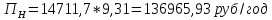 =25*14711,7*30,846=11344927,46(руб/год)