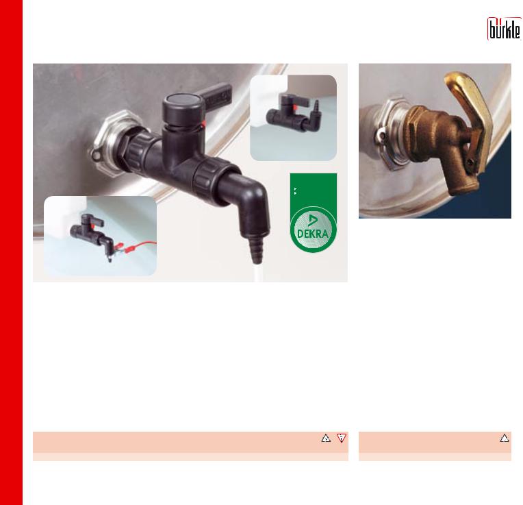 Стандартные спускные краны из полиэтилена или полипропилена не могут применяться для растворителей.