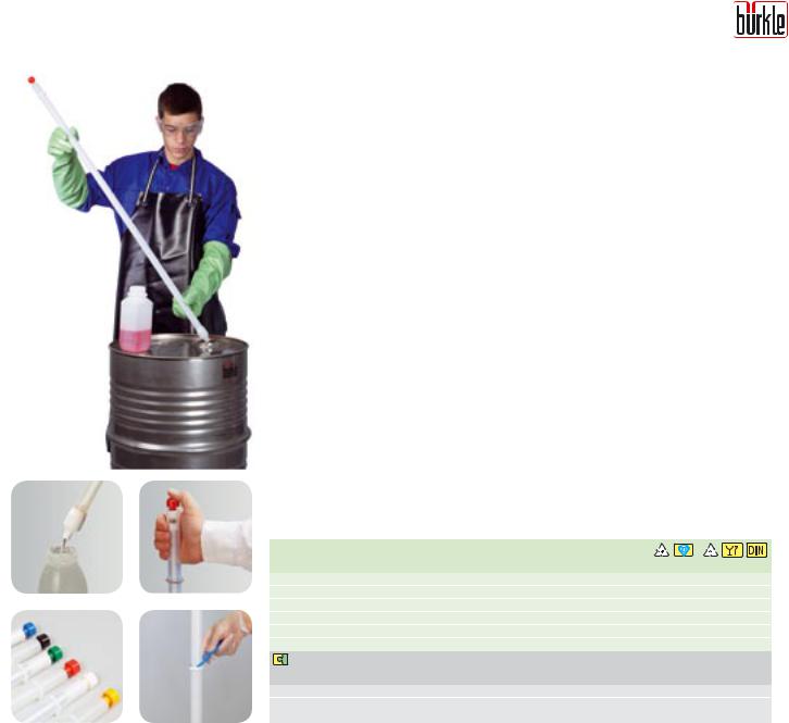 Пробоотборник «ЛиквиСамплер» (LiquiSampler) для жидкостей соответствует требованиям стандарта DIN 53 242. Изготовлен из высокочистого и химически инертного ПТФЭ/ФЭП или ПП, что позволяет избежать загрязнения пробы посторонними веществами.