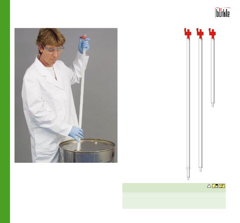 Погружной пробоотборник предназначен для простого отбора проб жидкостей. Содержимое хорошо видно через прозрачные трубки. Верхний торец пробоотборника снабжен обратным клапаном, нижний – шаровым краном.