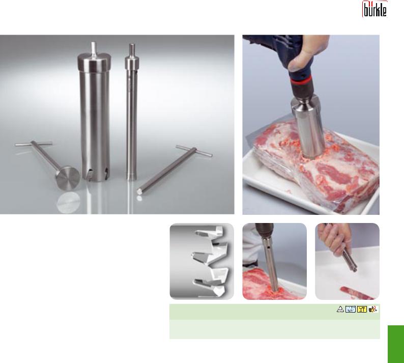 Пробоотборник «БифСтикер» (BeefSteaker) можно стерилизовать паром или на открытом пламени. Отверстие в режущей головке препятствует образованию избыточного давления и упрощает извлечение образца.