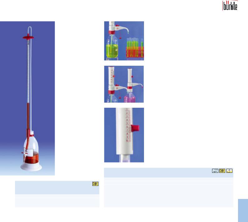 Точность дозирования обеспечивается специальной кнопкой, точное титрование осуществляется с помощью микровинта, а также высокоточной форсунки. Градуировка соответствует классу B (точность соответствует DIN ISO 385).