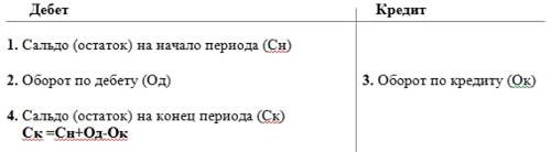 · остатки на конец отчетного периода (сальдо конечное). Конечный остаток определяют по данным о начальном остатке и оборотах дебета и кредита.